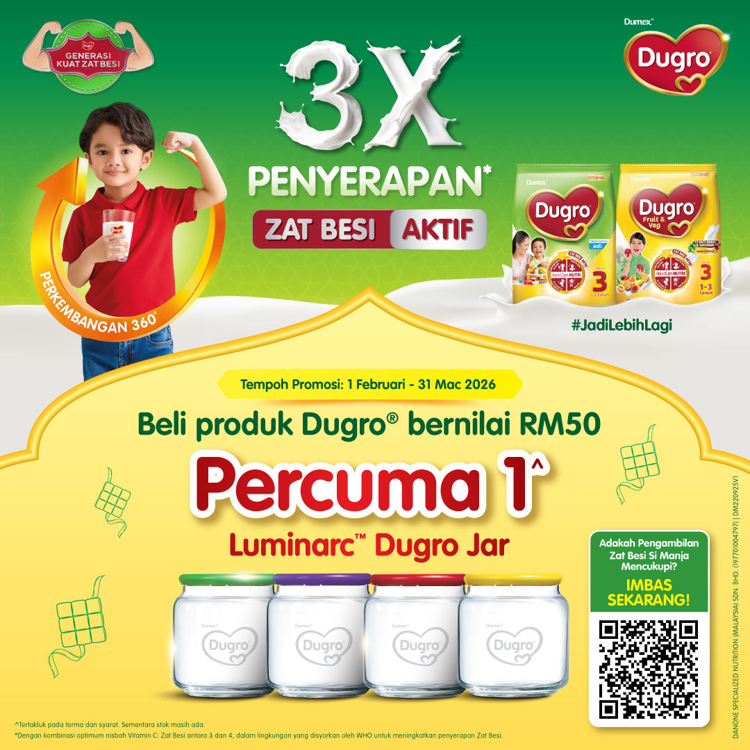Beli produk Dugro® bernilai RM50 untuk dapatkan 1x Luminarc™ Dugro Jar secara PERCUMA
