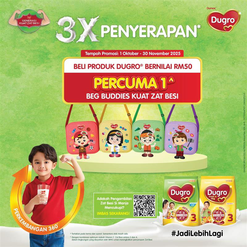 Kini, Dugro memperkenalkan Beg Buddies Kuat Zat Besi—beg comel yang menjadi peringatan buat Si Manja untuk terus berusaha menjadi seseorang yang hebat di masa hadapan, dengan sokongan Zat Besi Aktif! 💼✨